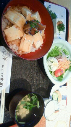 「おとうふ工房めめ」というお店でおばあちゃんとお昼。ヘルシーだし体に良いし美味しかったです。湯葉って美味しいんだね♪